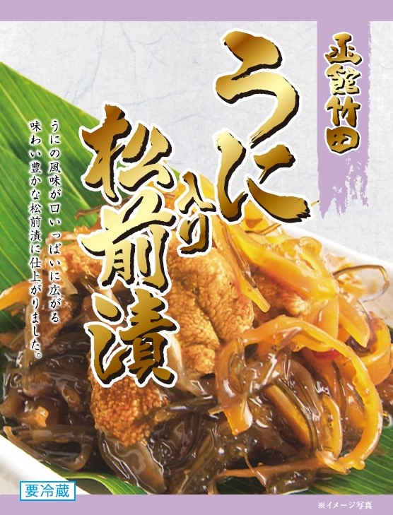 一度タレで煮ることによって旨味を閉じ込めたウニを甘辛い松前漬に混ぜ込んだ、